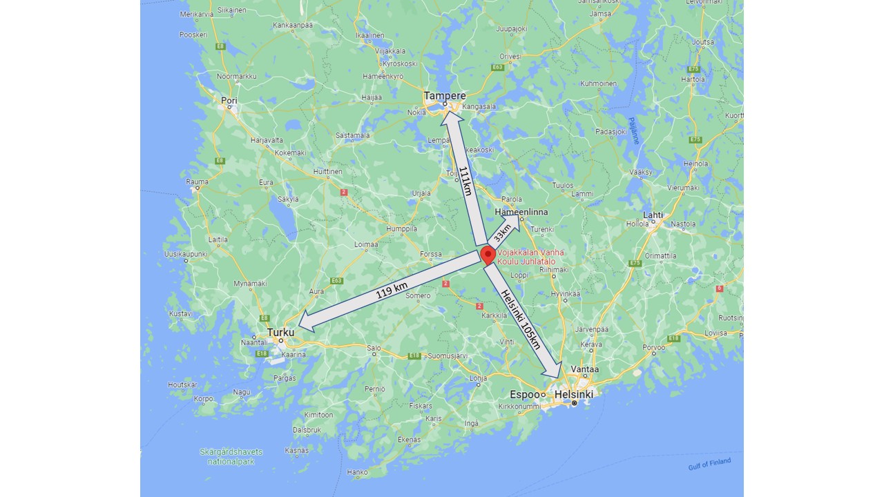 Vojakkalan kylä sijaisee hyvien kulkuyhteyksien varressa Kanta-Hämeessä, reilun tunnin ajomatkan päässä Helsingistä, Tampereelta ja Turusta. Hämeenlinnaan, Riihimäelle ja Forssaan on matkaa vain reilu 30km.